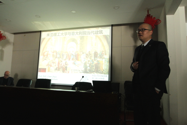 报告会于下午14:30在博学馆A座五层会议室召开,建筑系教师、研究生以及本科生等80人参加了此次学术讲座。陈蓁教授以“米兰理工大学与意大利现当代建筑”为题,介绍了米兰理工大学的建筑师(教师和学生)的作品。米兰理工大学的教师和毕业生群体,是意大利现当代建筑史的一部分。同时,以这些作品为例评述意大利现代建筑与当代建筑。讲座图文并茂、深入浅出,现场反响热烈。Maurizio Meriggi教授以中国广东客家围屋保护与再利用规划研究课题为例,讲述米兰理工大学建筑学院的绿色城市、村落和建筑遗产保护的研究方法与价值,探讨在中国城乡一体化中的绿色城市发展。