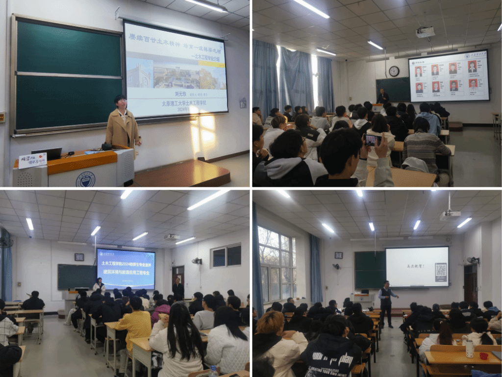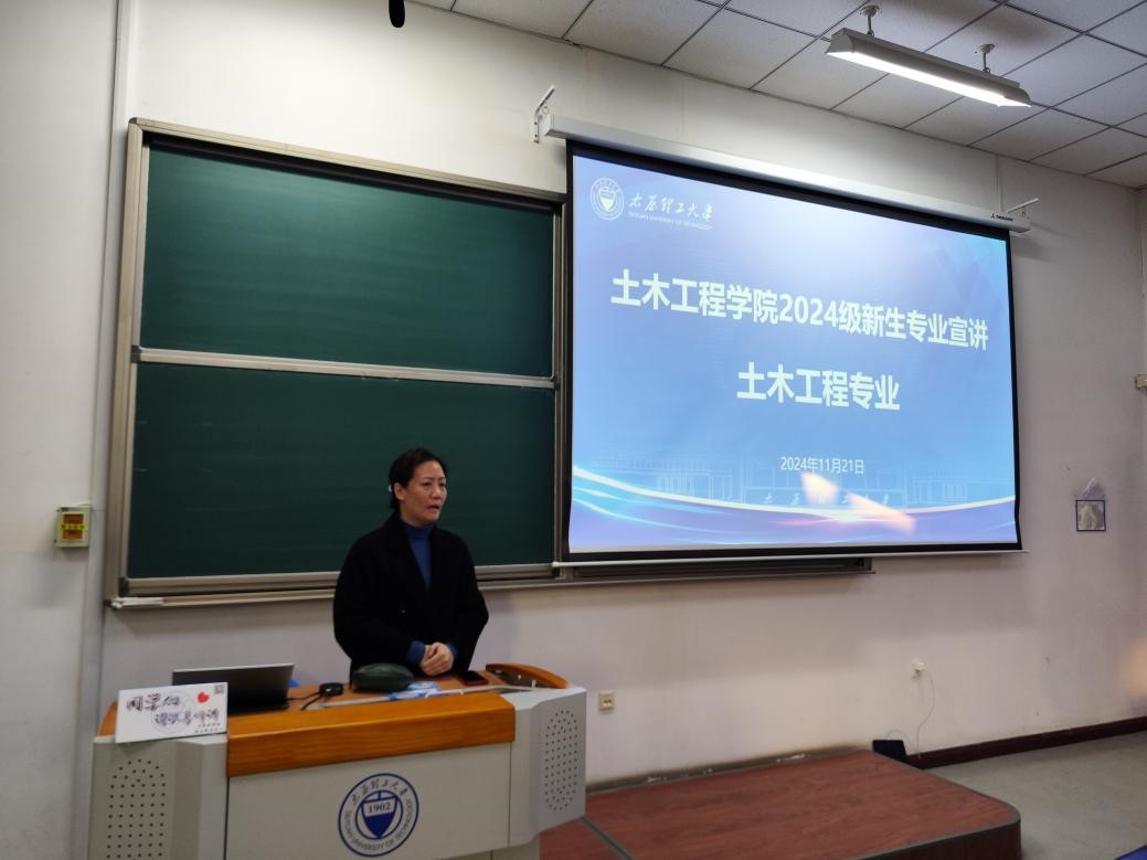为帮助学生更加深入了解专业的特点、发展前景以及学习重点,引导其制定科学的学习计划,为未来的学习和就业做好充分准备。11月21日至27日,学院于明向校区举办了2024年本科学生“专业之旅”土木类专业宣讲会。学院党委副书记芦倩,副院长、建工系主任刘元珍,副院长、道路与桥梁工程系主任张翛,建筑环境与能源应用工程专业系主任张兴惠,给排水科学与工程系主任张峰出席了本次活动并做主题宣讲。同时,本次活动邀请了相应专业优秀学长进行经验分享,2024级土木类专业350余名学生聆听宣讲。活动由芦倩主持。