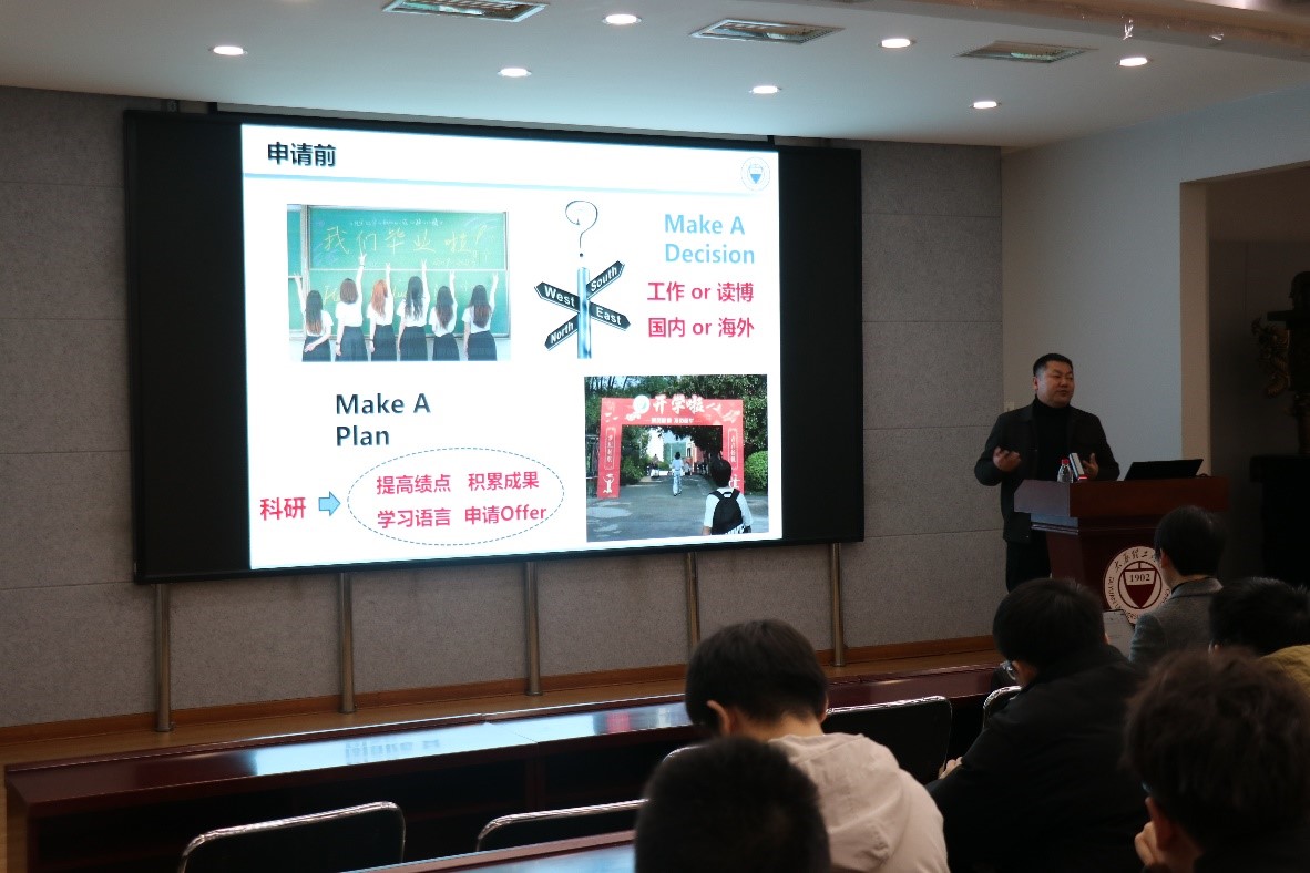 宣讲会伊始,孙逸飞教授详细介绍了学院国际合作交流项目的整体情况,包括与国外高校的联合培养项目、短期交换生项目以及国际学术会议参与情况等,孙院长以自身海外留学经历为例,为同学们展现了精彩的海外留学生活,鼓励同学们积极把握出国交流学习的机会,提升自身竞争力。