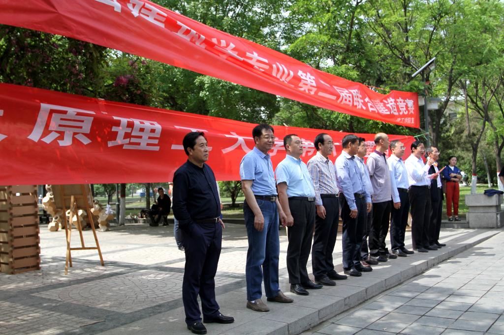 2018年5月9日山西建筑学专业第二届联合建造竞赛暨欧博abg官网登入口第六届建造节开幕式在我校迎西校区清泽园广场举行。