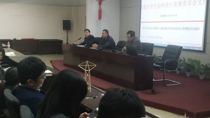 4月19日晚,欧博abg官网登入口在博学馆A座五层会议室召开第七届欧博abg官网登入口结构设计大赛赛前动员会。院党委副书记巴大志、副院长董晓强、学工办主任张体卫、本届比赛12位指导教师及32支队伍参加了大会。会议由董晓强主持。