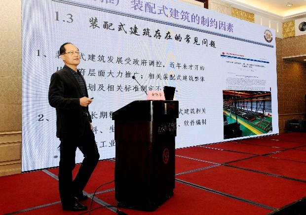 郝际平以《装配式建筑发展的动向》为题,详细解读了装配式建筑发展的动向,剖析了装配式建筑还存在全产业链不完善、相关实施标准不完备、设计方面存在技术壁垒等制约装配式建筑发展的系列问题,揭示其根源在于业内仍未从系统工程的角度去发现问题、研究问题和解决问题。他指出,未来装配式建筑的发展一定要实现标准化设计、工厂化生产、信息化管理、绿色化施工。曾捷以2019版《绿色建筑评价标准》为题,详细解读了该标准体系的构成,论述了绿色建筑的内涵定义及发展趋势。王静以《智慧城市建设—广州南沙明珠湾起步区》为题,就智慧城市的规划、建设、管理等做了详细介绍。雷宏刚以《钢结构装配式建筑》为题,首先规范了装配式建筑相关的名词定义,客观分析了装配式建筑的不同结构类型和各自特点,以钢结构装配式建筑为重点详细论述了其设计、施工中的关键问题,并就典型工程案例进行了解读,最后对未来装配式建筑发展的制约因素和破解方法提出了建议。张太清以《装配式建筑让生活更美好》为题,从国家和我省政策层面解析了国家对发展装配式建筑的要求,明确了目前存在的差距,指明了未来发展的方向。王金平以《土木华章 窑房同构—晋系古建筑营造智慧浅析》为题,介绍了山西民居的地域分化、地域特征和典型民居的建筑风格等内容,体现了各地丰富的文化底蕴。栗学林以《装配式建筑的先行者—预应力混凝土预制桩》为题,详细介绍了建华建材(山西)有限公司的混凝土预制构件产品和技术解决方案,积极服务于山西省的土木建筑行业。