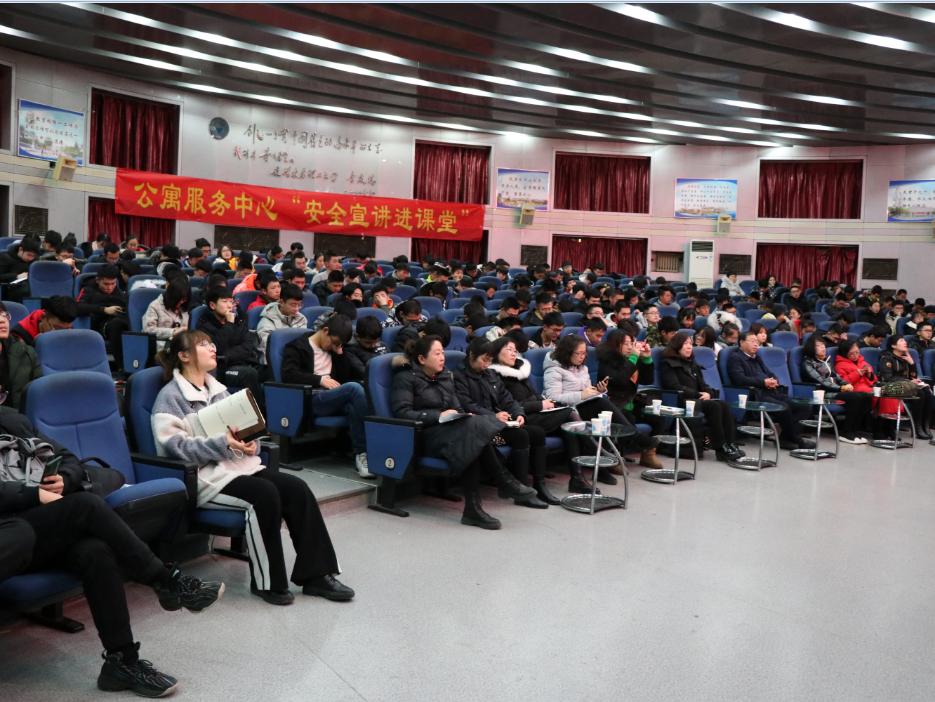 2019年12月30日,欧博abg官网登入口在思贤楼三楼召开“学生公寓安全宣讲进课堂”教育大会,后勤保障处副处长、公寓服务中心主任张文基,公寓服务中心副主任、党支部书记景晓芳,副主任刘玉花等领导出席,及欧博abg官网辅导员和2019级全体学生参加。