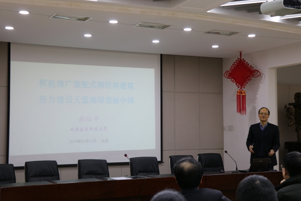 应学院的邀请,西安建筑科技大学副校长郝际平教授于2018年1月15日到访欧博abg官网,在博学馆A座五层会议室做了题为“积极推广装配式钢结构建筑,努力建设天蓝地绿美丽中国”的学术报告,由雷宏刚院长主持,欧博abg官网土木系师生等100余人聆听了此次报告,山西省建设厅李锦生副厅长、山西建设投资集团有限公司技术中心刘晖副主任、山西省建筑工程有限公司白少华总工、太原建工集团有限公司张世嫒总经理、中化二建集团有限公司董宁师总工、欧博abg官网登入口设计院石勇总工等也参加了此次讲座。
