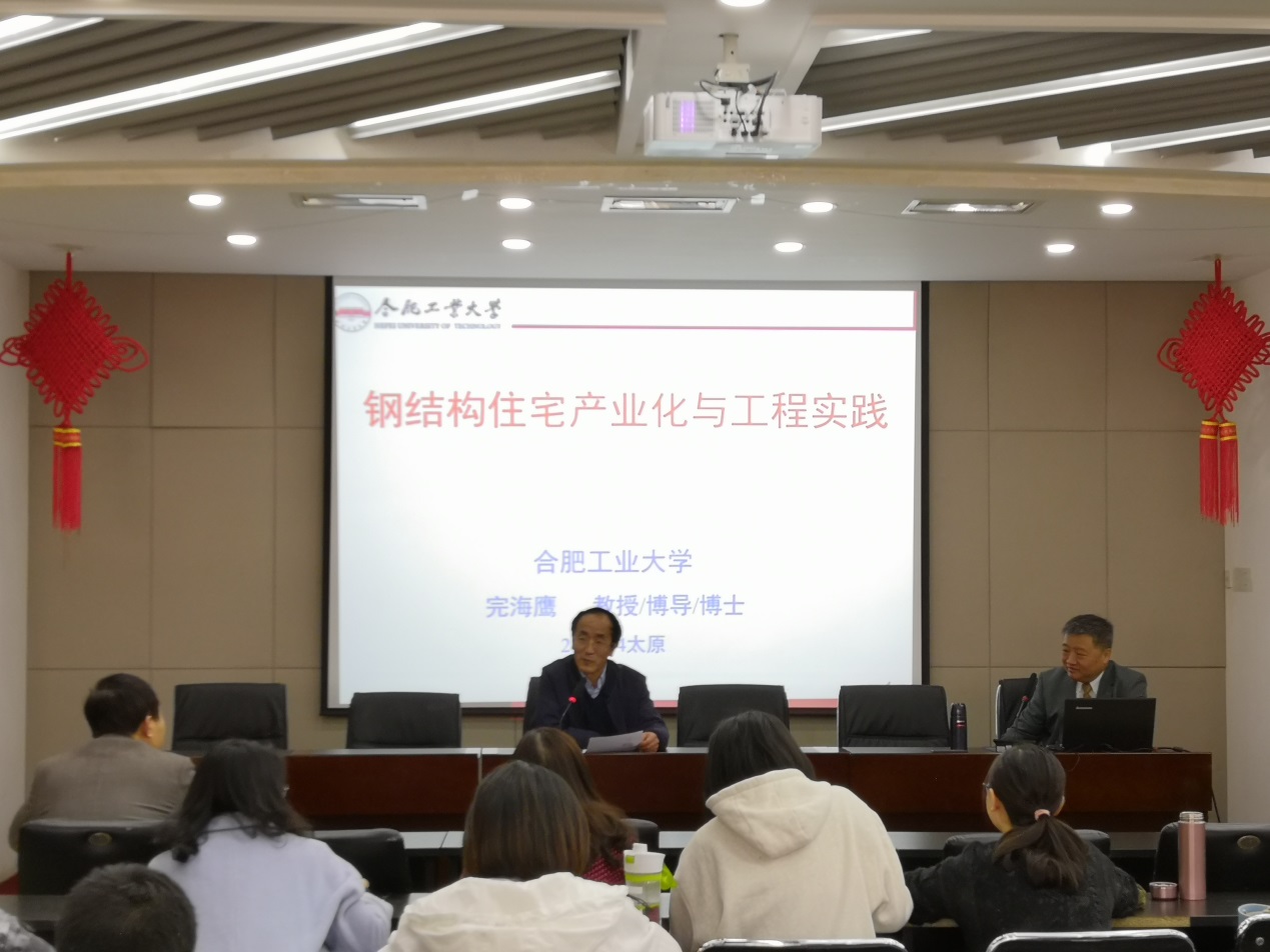 完海鹰教授首先概述了装配式钢结构建筑的特点及产业化发展情况,将装配式钢结构住宅体系与实际示范工程相结合,重点讲解了其发展瓶颈及解决思路,为促进山西装配式钢结构住宅体系的应用和发展提供了借鉴。