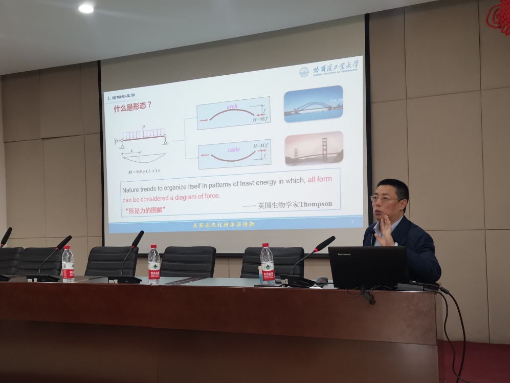 2020年11月11日下午,哈尔滨工业大学欧博abg官网登入口副院长武岳教授应邀至欧博abg官网进行了题为《从形态优化到体系创新》的学术报告及国家自然科学基金项目申报经验交流座谈会。欧博abg官网登入口教师、研究生及本科生积极参加,报告及座谈会由学院副院长董晓强教授主持。