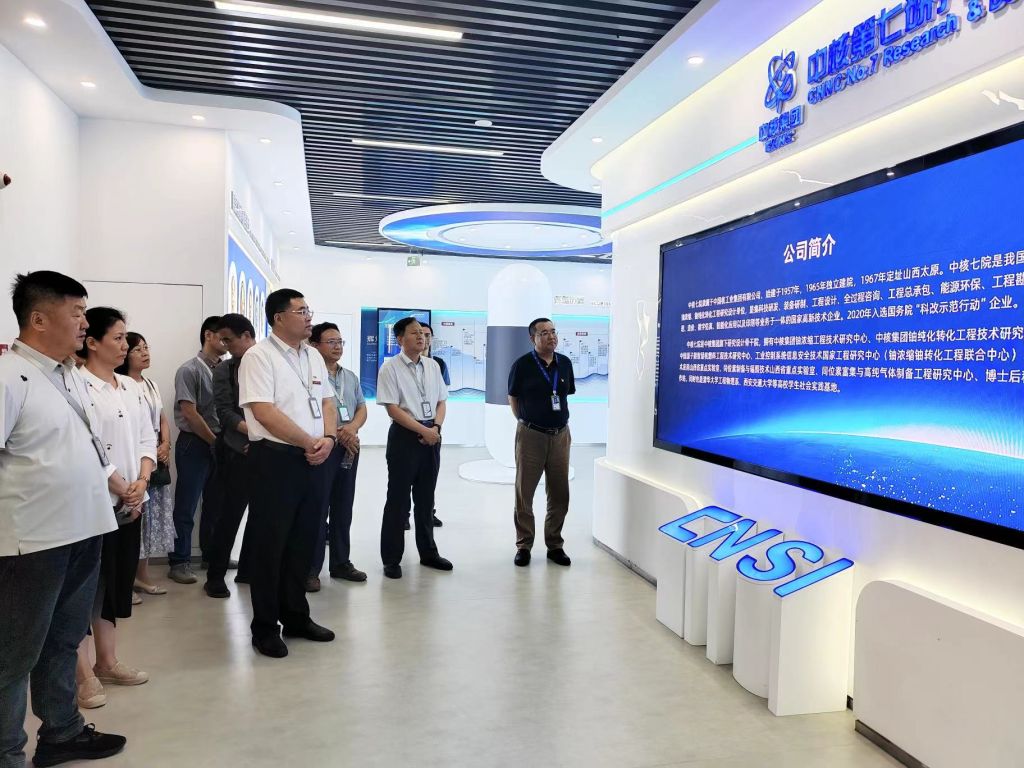 与会人员在参观完中核七院企业文化园地,学习致敬“四个一切”的核工业精神后,围绕党建共建、科研合作、成果转化以及研究生培养等主题进行了深入交流和热烈讨论,并在特殊工程结构抗震、污废水处理以及零碳建筑等领域方向达成初步合作意向。