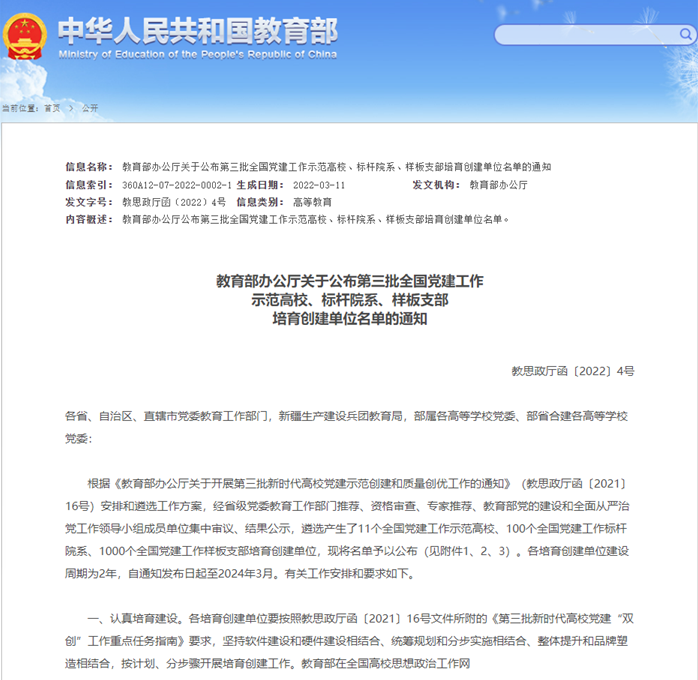 近日,教育部公布了第三批新时代高校党建示范创建和质量创优工作培育创建单位名单。欧博abg官网土木第三研究生党支部入选“全国党建工作样板支部”培育创建单位。