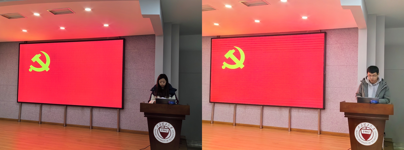 完成预备党员转正事宜后,全体党员宣读入党誓词。随后,王永辉同志带领党员同志们观看国家主席习近平发表二〇二四年新年贺词,进行理论学习,并对近期工作做出安排。由于学期期末将至,部分党员同志有期末考试,王永辉同志强调了考试纪律问题,并要求在考试时学生党员应佩戴党员徽章,亮明党员身份,以起到党员的先锋模范作用。