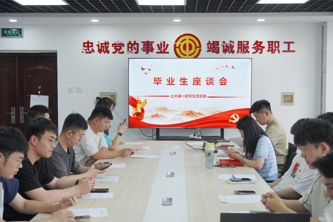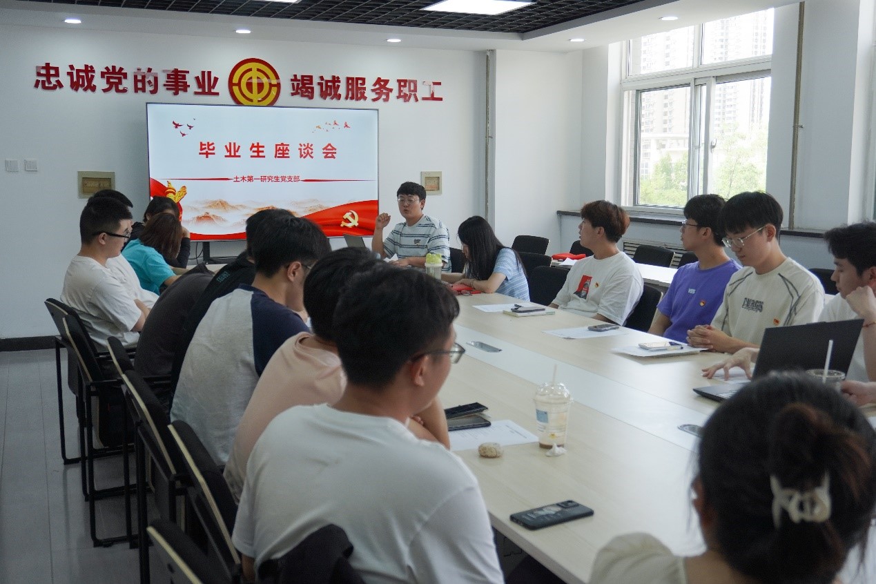 为进一步做好党支部毕业生党员教育管理工作,引导和激励广大毕业生党员坚定理想信念,以饱满的热情走向新的学习和工作岗位,2024年6月13日下午,土木第一研究生党支部在博学馆四层“党员之家”召开“初心向党 启航新程”毕业生党员座谈会。党支部全体党员参加,座谈会由党支部书记柳丽主持。