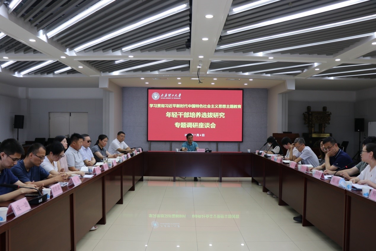 7月4日上午,校党委副书记刘润祥莅临欧博abg官网,围绕“青年干部培养选拔研究”主题,开展主题教育专题调研座谈,组织部副部长谢鹏华、干部科科长牛庆芳陪同。院领导班子、系(部)中心主任、党支部书记及教师代表参加了调研座谈会。会议由党委书记武佐君主持。