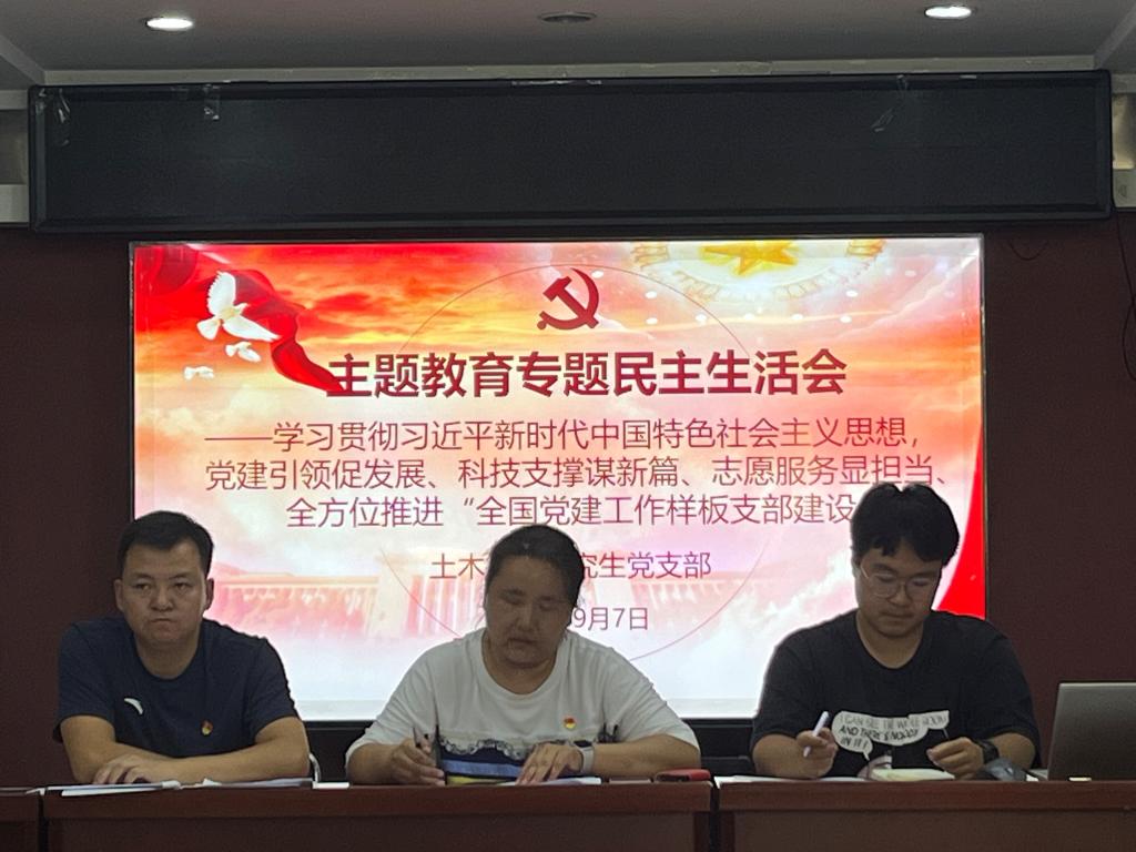 按照校党委和院党委的统一安排,根据中共欧博abg官网登入口委员会《关于在学习贯彻习近平新时代中国特色社会主义思想主题教育中开好专题民主生活会的通知》要求,9月7日下午,土木第三研究生党支部召开以“学习贯彻习近平新时代中国特色社会主义思想,党建引领促发展、科技支撑谋新篇、志愿服务显担当、全方位推进‘全国党建工作样板支部’建设”的专题民主生活会。会议由支部书记何斌主持,支部副书记马富丽及全体党员同志参加。